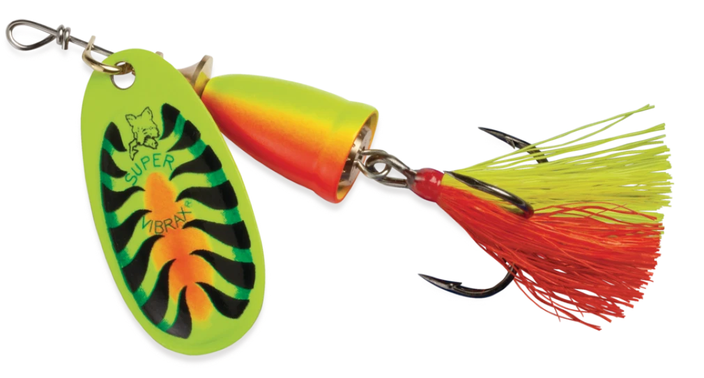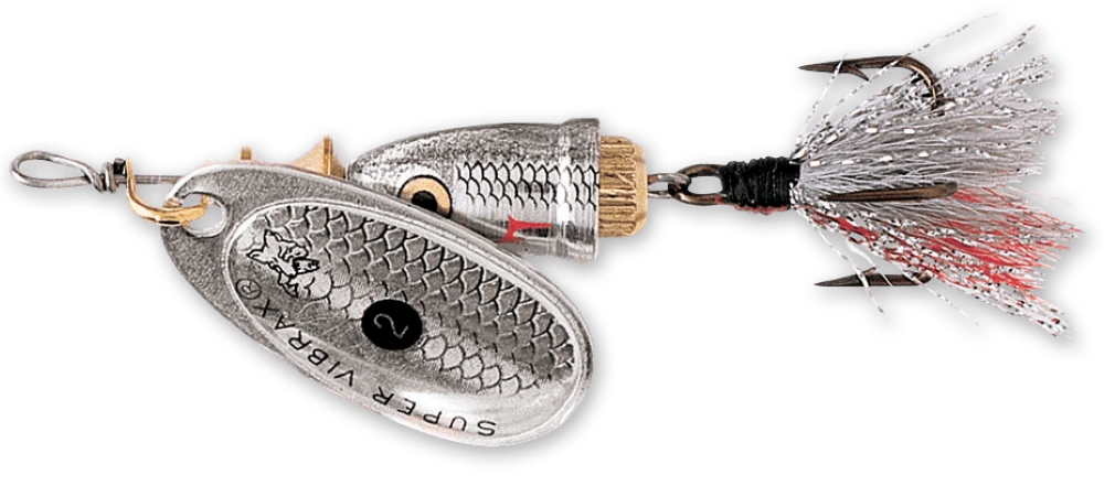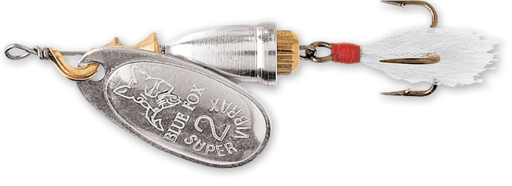 Vibrax Fox Tail patented two-part body, which virtually eliminates line twist is really what sets all Blue Fox spinners apart. Whether casting for still water predators such as perch and chub, or working fast moving rivers for trout and salmon, this low-frequency spinner is going to create the noise and vibration required to trigger a strike