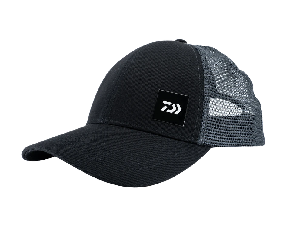 Trucker cap, curved bill with mesh back and snapback closure.