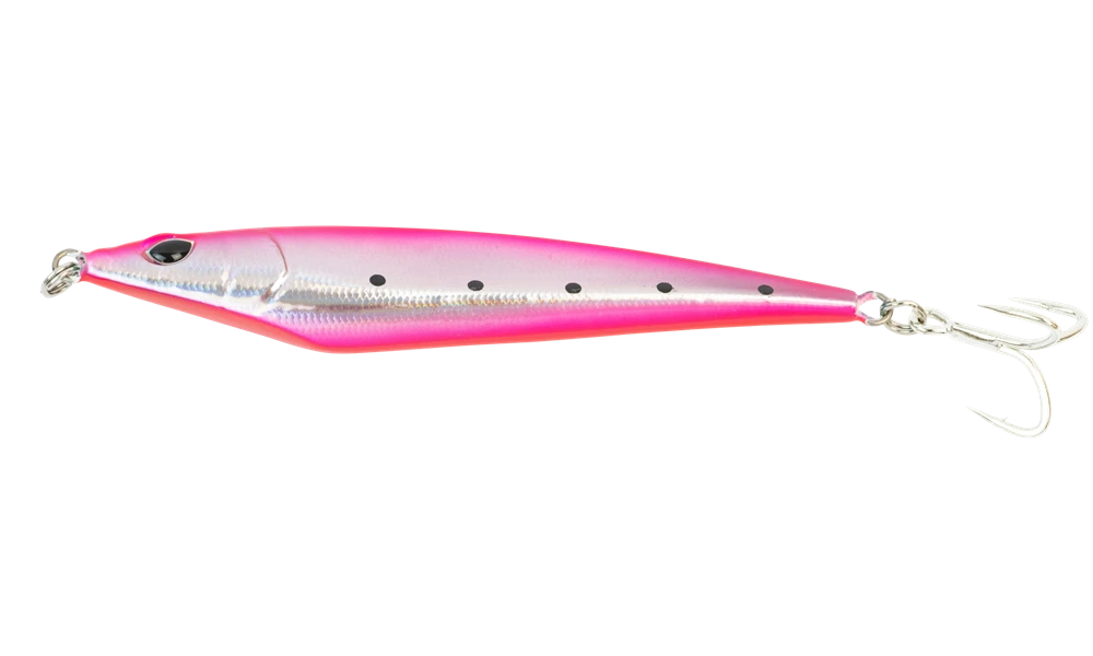 The unique angled head design creates an erratic sideways darting movement with each wind of the reel. The weighted belly shape makes easy distance casting from shore or on a boat – ensuring you can get to where the fish are feeding! Fitted with Ultimate BKK Hooks to be fished straight out of the packet.