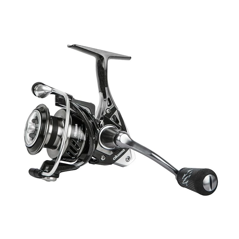 Okuma ITX Carbon spinning reels are built for ultimate durability. The lightweight and rigid C-40X long strand carbon fiber featured in the body, side plates, and rotor give extra strength where it is needed the most. The machined aluminum handle screws directly into the reel assuring maximum security and stability. The 7HPB +1RB high performance ball bearing system keeps the reel running smoothly in freshwater and inshore with the precision machine cut brass pinion gear. The machined aluminum 2-tone anodized spool is surrounded by Okuma’s Cyclonic Flow Rotor system that increases air flow through the ported rotor, increasing drying time and minimizing corrosion throughout the reel. Housed in the spool is the multi-disc, carbon fiber drag system with hydro-block asket keeping water out and your drag running smoothly.