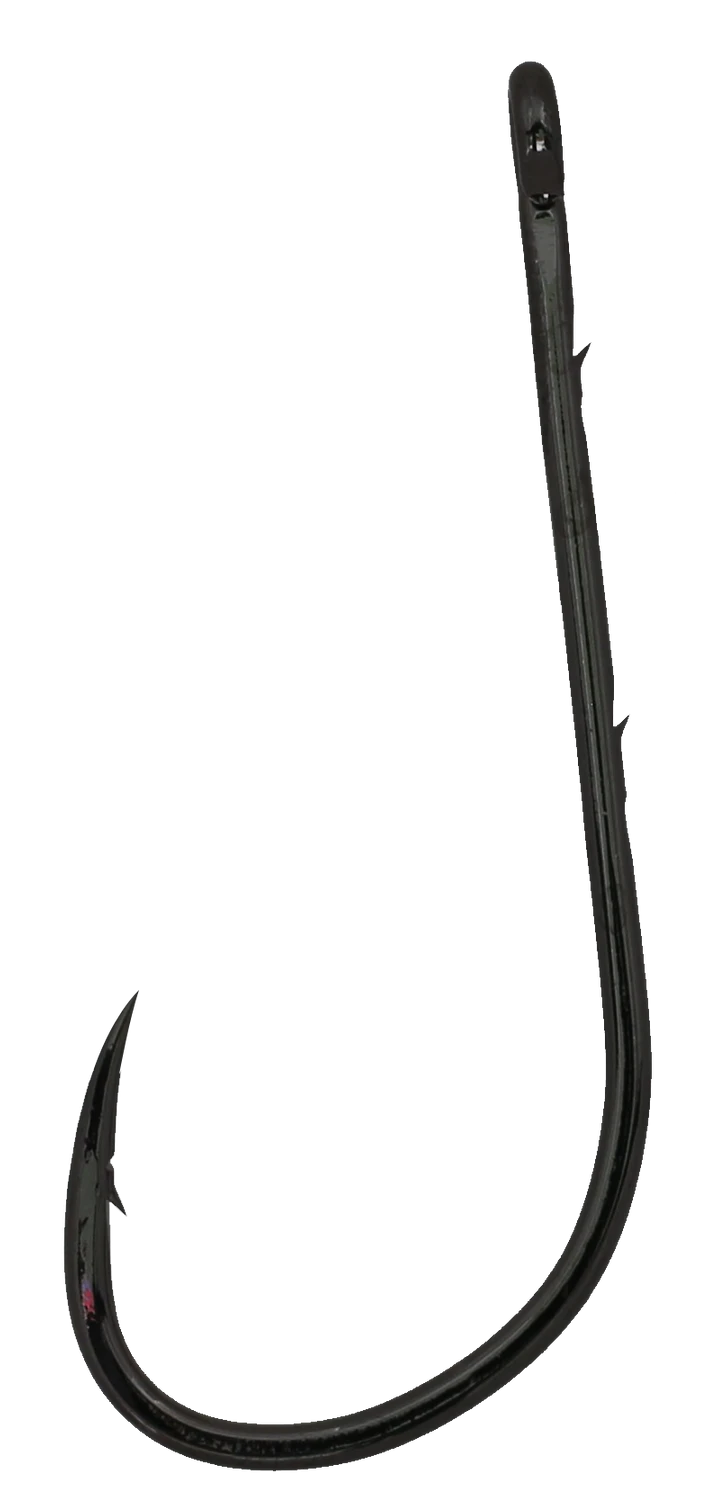 EBI Baitholder hooks utilise a straight eye and dual barbs. Ideal for use with all baits for fishing both fresh and salt water species. Features include dual bait holders on shank, Super Needle Point, and Black Chrome finish.