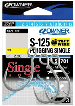 Specialist inline fishing hook designed for retro-fitting to hard body trolling, casting or jigging lures (minnows, poppers, stick baits and jigs). Made by respected fishing tackle brand – Owner. Can also be used as a jigging hook for deep water jigs.