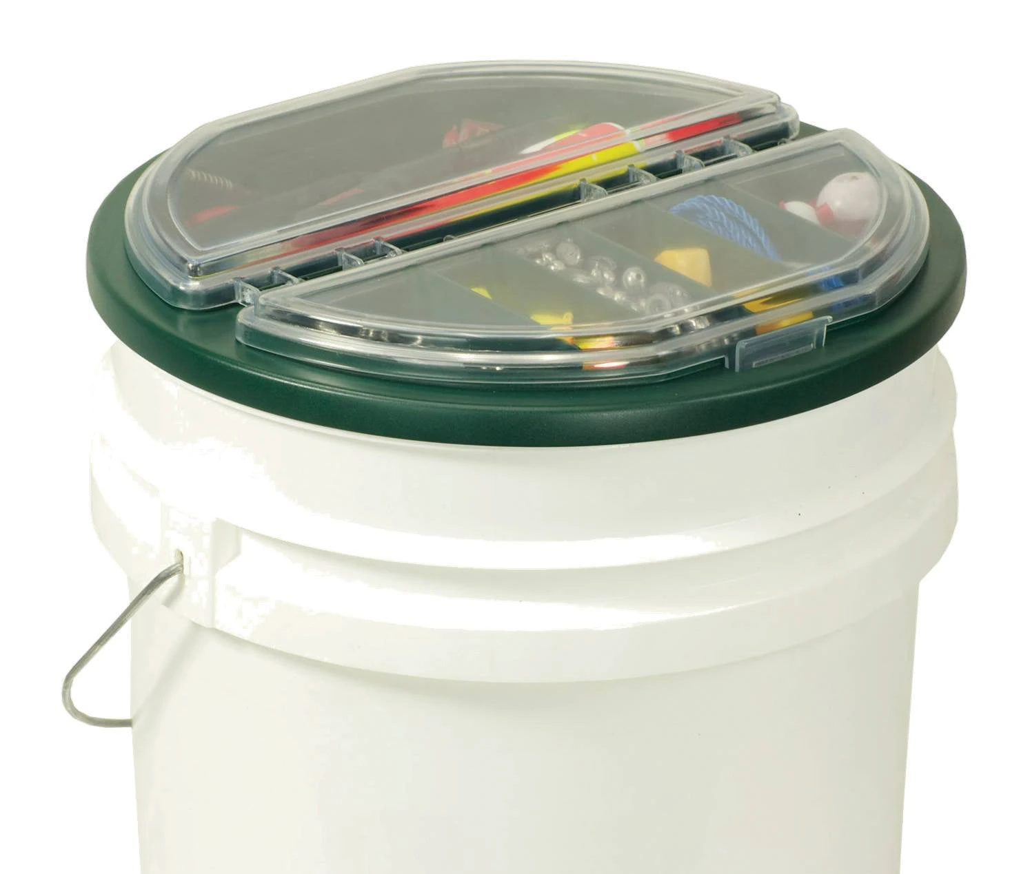 Perfect for shoreline or pier angling, the 725 Bucket Topper StowAway is designed to fit on top of a standard 5 gallon bait bucket and provide extra storage in what would normally be wasted space.
