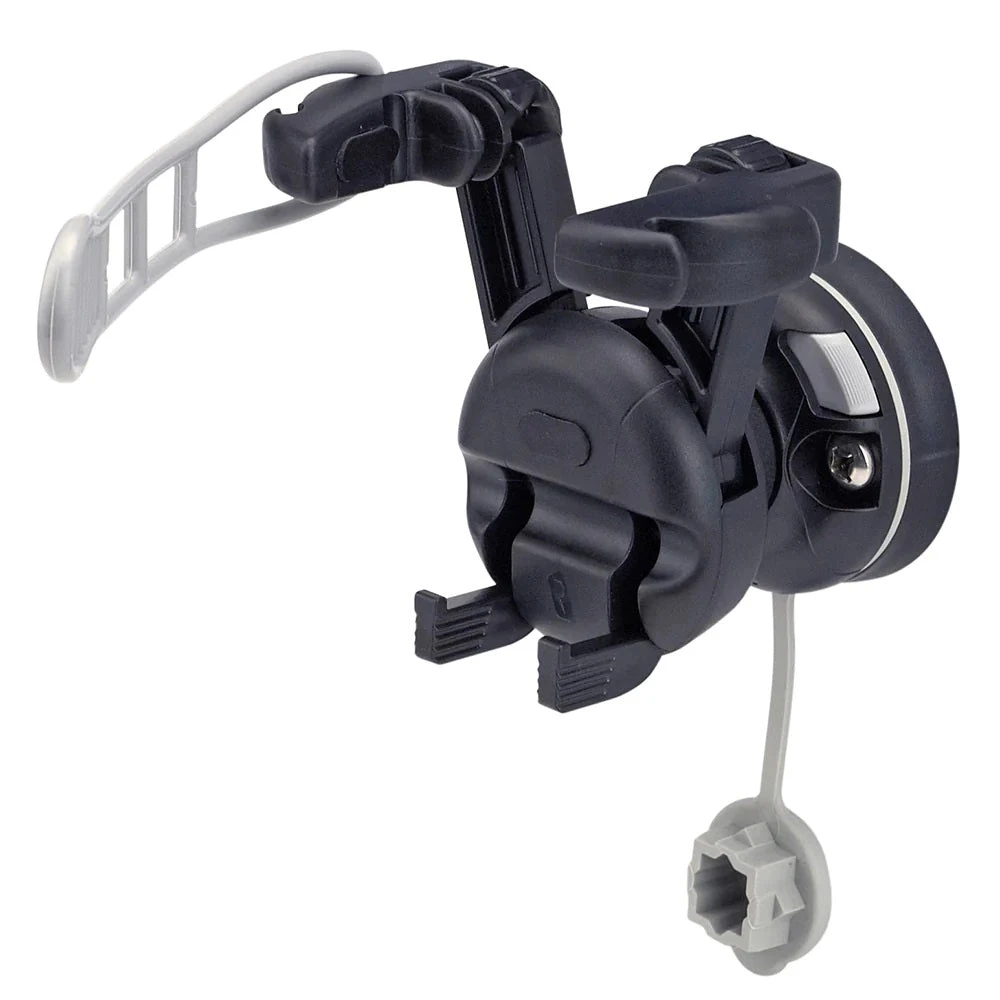 The spring loaded arms are sufficient for most applications, with neoprene rubber pads to give high gripping power. For extra peace of mind the adjustable, UV stabilised, Eurethane rubber retaining strap ensures your device goes nowhere, even in the most rugged environment.