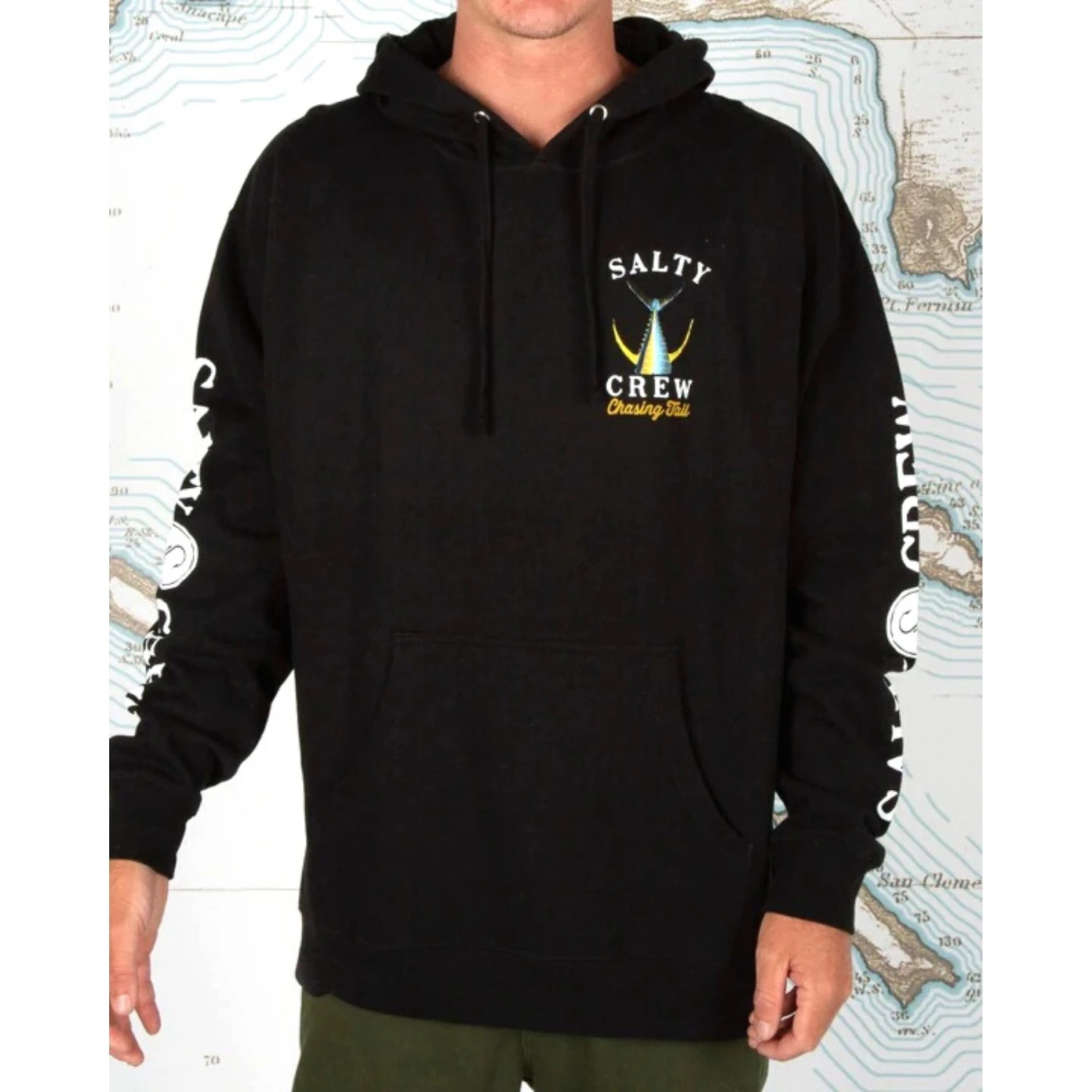 The Tailed Hood Fleece is a men’s midweight hooded fleece with kangaroo pouch pocket. Featuring custom Salty Crew screen printed graphics on the front, back, and sleeves.