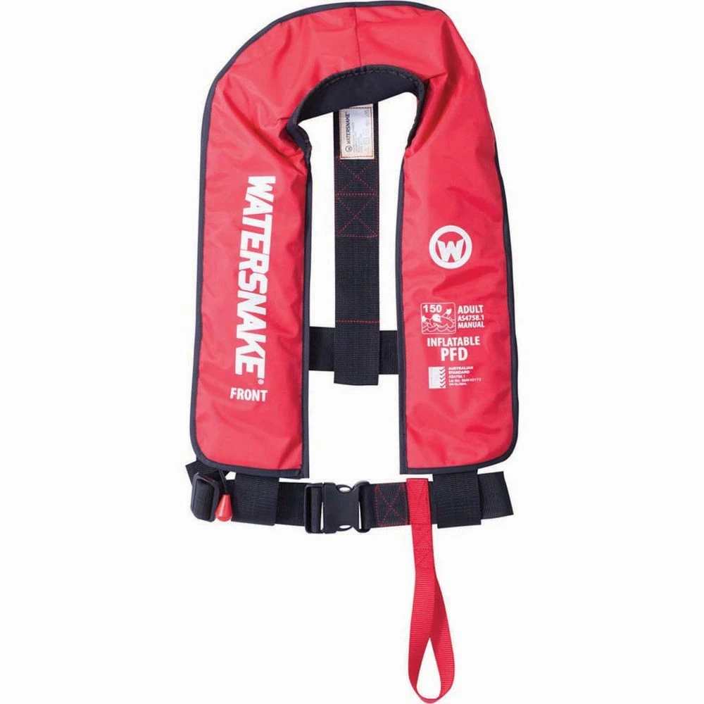The lightweight Watersnake Inflatable PFD Level 150 yoke has been designed to meet the AS4758.1 stringent safety rating.